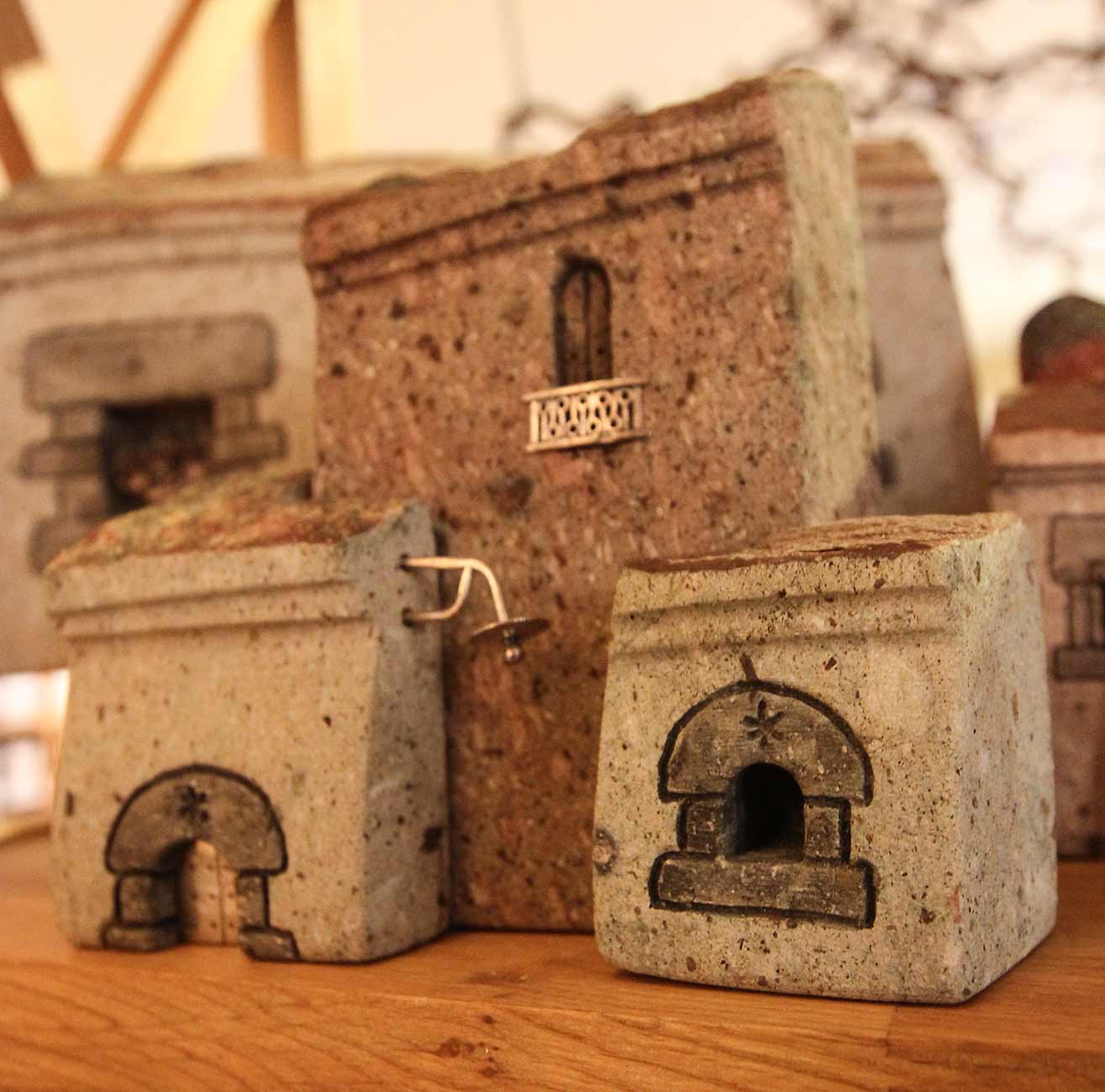 Die Risse des Steines sind das Dach. Das mineralhaltige Wasser das durch die Felsen sickerte, gab dem Stein die Farbe. Ein Mensch gab ihm die Form. Die Aragonesischen Türen in Silber geben den “Tocco Finale”. Diese sardischen Häuser sind Erinnerung an alte Traditionen und bergen in sich die Strahlen der Sonne und den mediterranen Duft.